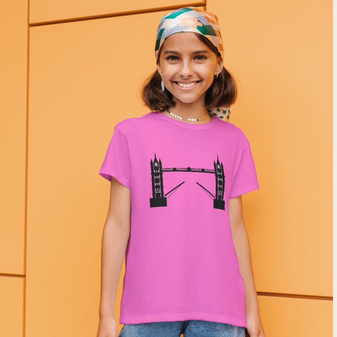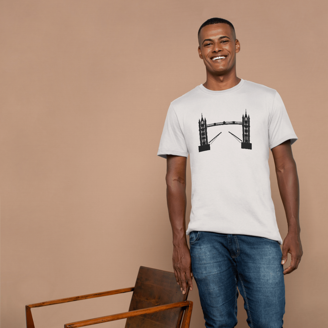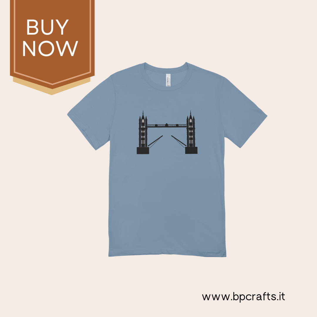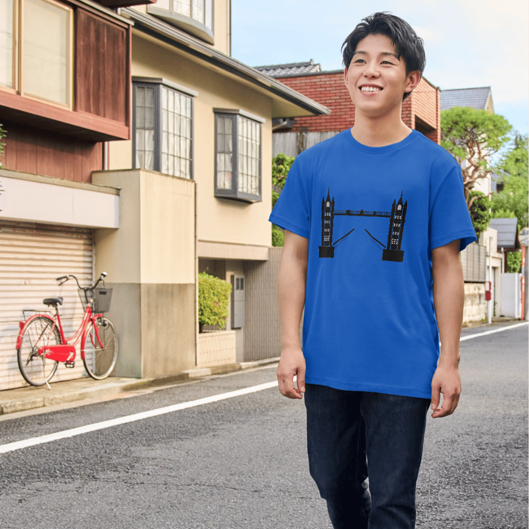 SEO Keywords: London Bridge T-Shirt, HTV Printed T-Shirt, London Bridge Tee, Iconic London Apparel, London Landmark Fashion, Unisex Cotton T-Shirt, Cityscape Clothing, Vibrant HTV Print, Urban Style Tee, Historical Fashion, London Streetwear, Trendy London Merch.